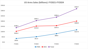 The second question relates to geography. Which regions and individual countries account for the bulk of notified sales and how has this changed over time. Particular attention is paid to Europe, which has moved from a relatively modest Foreign Military Sales customer to the leading region in the aftermath of the 2022 invasion of Ukraine; to the Near East and South Asia, historically the largest buyers of US equipment; and to East Asia and the Pacific, where concerns about China and North Korea shape demand.